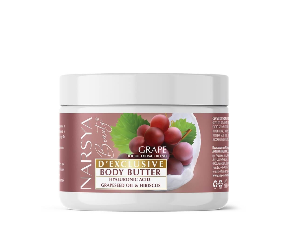 Unsere Körperbutter Grapes verwöhnt die Haut mit intensiver Feuchtigkeit und einem frischen, fruchtigen Duft nach saftigen Weintrauben. Die cremig-buttrige Textur schmilzt sanft auf der Haut, pflegt tiefenwirksam und macht selbst trockene oder anspruchsvolle Haut spürbar weich und geschmeidig.
